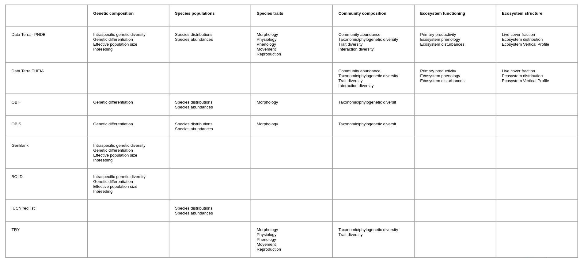 Overview of biodiversity databases through the Essential Biodiversity Variables to be completed