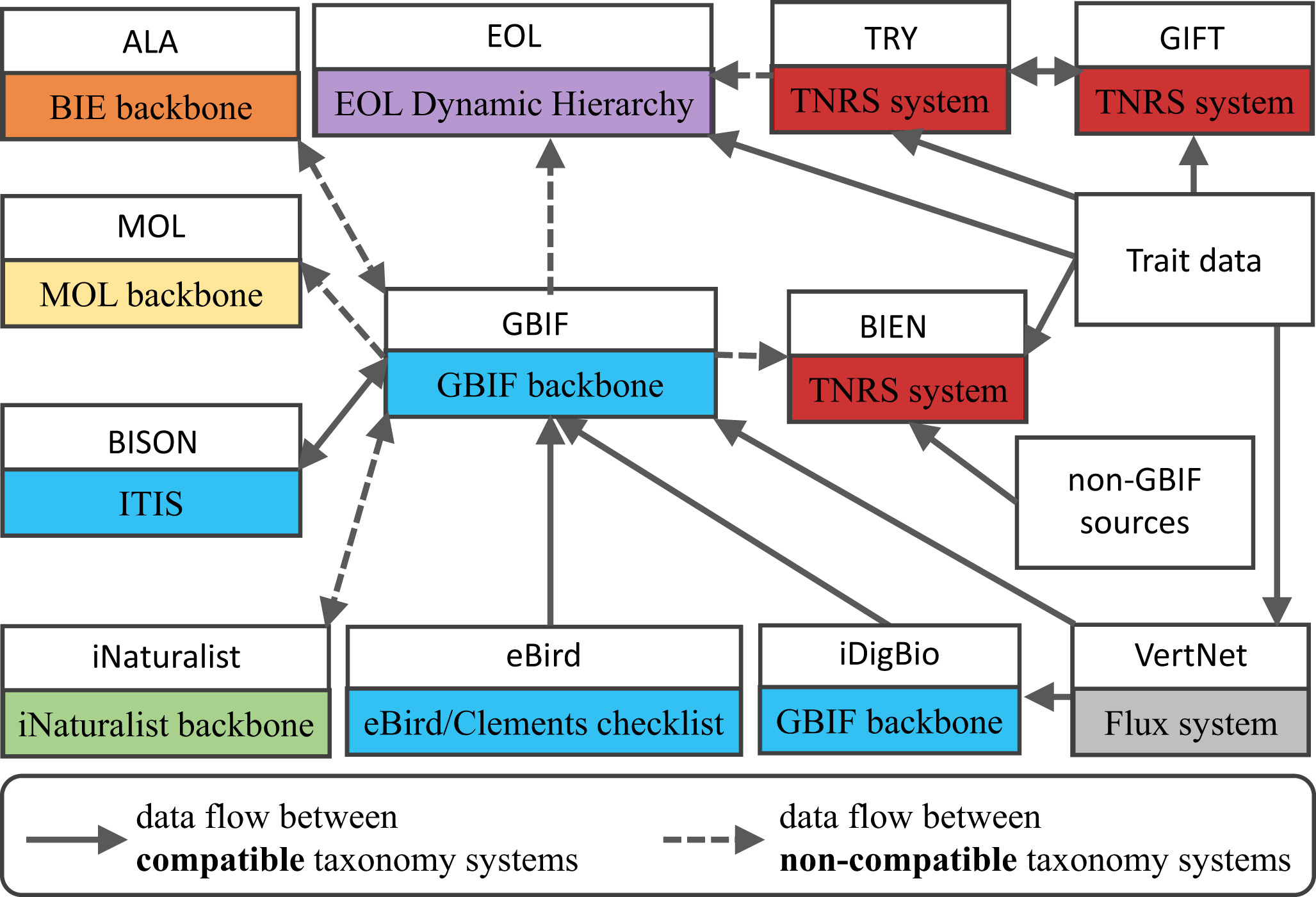 But there are links between biodiversity databases and/or biodiversity data aggregators, thanks to FAIR process (data & metadata standards, controlled vocabularies, etc.)