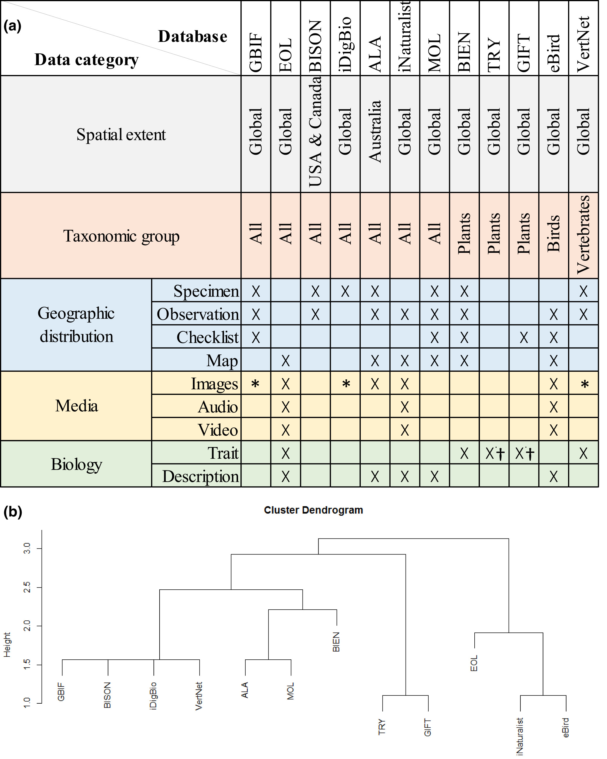 Our review showed that each biodiversity database holds unique scientific value because they cover different spatial extents, taxonomic groups, and record types.