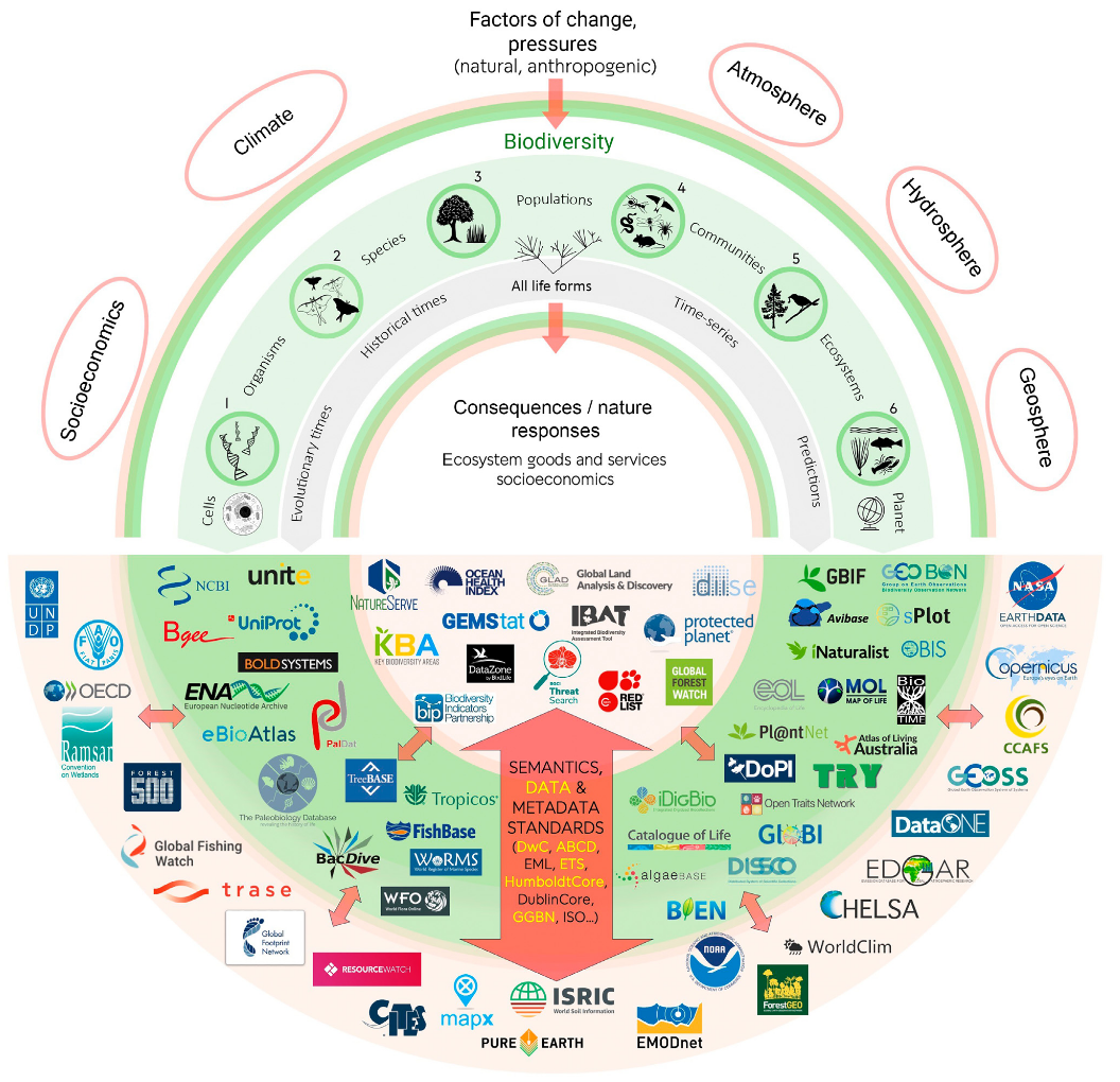 | GBIF | the international GBIF community | thematic | Life sciences, Biodiversity, Animal biology, Plant biology, Ecology, Environment; Ecosystems | Taxa, occurrence data, sampling data, all standardized according to Darwin core or ABCD standards. | yes | DOI | no |