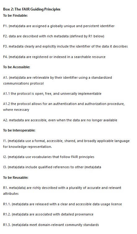 A set of guiding principles for managing research data to make it Findable, Accessible, Interoperable, and Reusable by humans and machines1.