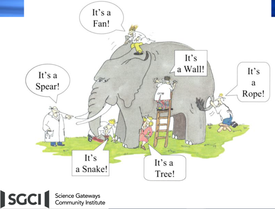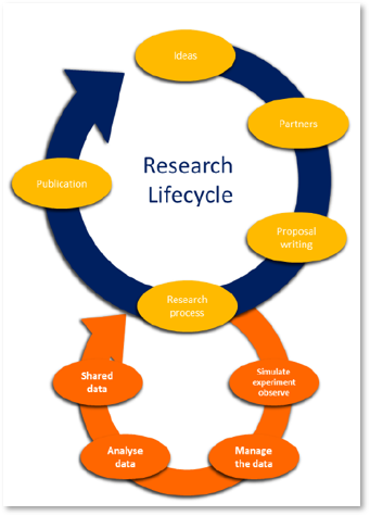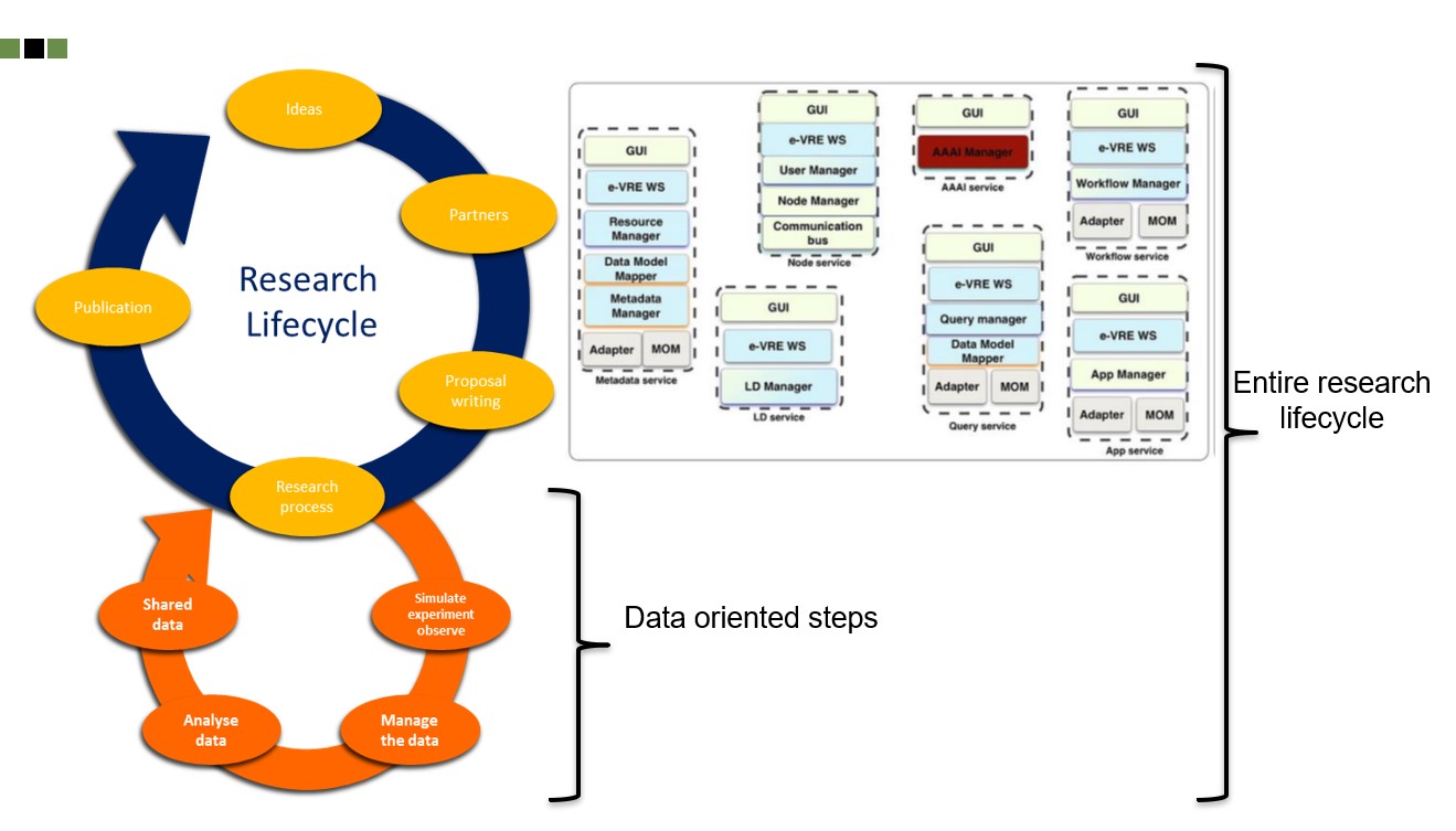 support for the ‘researcher workflow’ from research idea (and checking the literature etc.) through observations/experiments to publication and subsequent discussion with citation and accreditation (maybe including management functions such as proposals and reporting to funders).