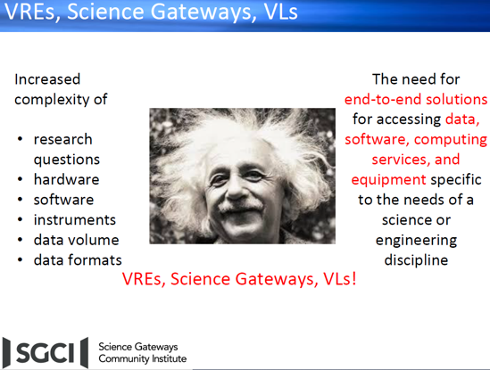“Virtual Research Environments are innovative, web-based, community-oriented, comprehensive, flexible, and secure working environments conceived to serve the needs of modern science» Candela et al. 2013